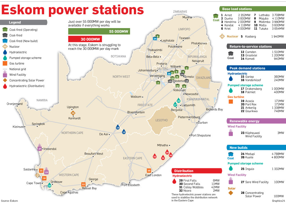 Eskom generates 95% of electricity in South Africa and has the only nuclear power station in Africa